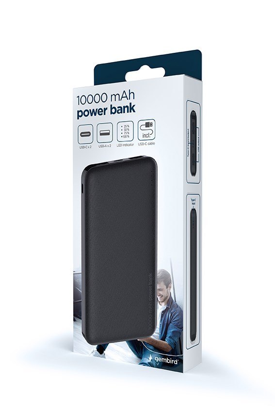 GEMBIRD POWERBANK 10000 MAH 2X USB, CZARNY