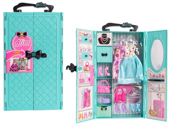 Garderoba, szafa z ubrankami i akcesoriami, 3 sukienki, 3 pary butów, 2 torebki