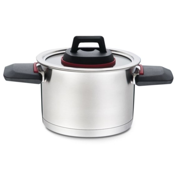 Jednym z kluczowych atutów tego garnka są składane uchwyty, które ułatwiają przechowywanie. Dzięki tej innowacyjnej funkcji, garnek zajmuje niewiele miejsca i można go bez trudu schować, wkładając jeden w drugi z innymi garnkami z serii MR-3530. Garnek wyposażony jest również w szklaną pokrywkę z otworem odprowadzającym parę, który umożliwia monitorowanie procesu gotowania bez konieczności podnoszenia pokrywy.