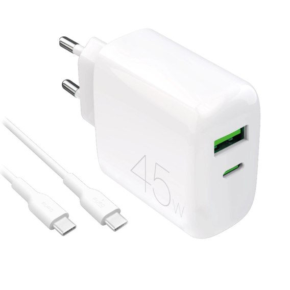 Ładowarka Puro Daily Prolite 45W USB-C USB-A Power Delivery z kablem USB-C - biała