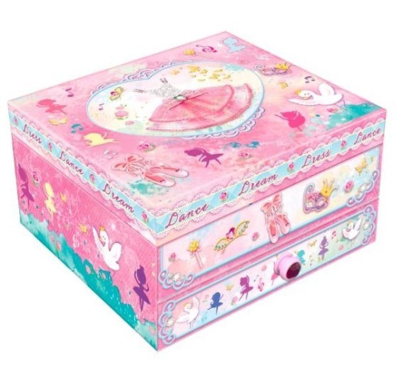 Pozytywka gra klasyczną melodię. Po otwarciu figurka będzie się kręcić. Gdy melodia przestanie grać pozytywkę wystarczy nakręcić. Działa dzięki specjalnemu mechanizmowi, nie wymaga baterii. Zawiera lusterko, miejsce na schowanie drobiazgów oraz wysuwaną szufladkę.