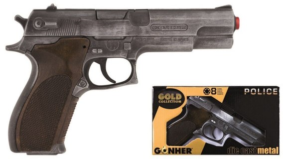 Metalowy pistolet policyjny na 8 naboi z magazynkiem z kolekcji Gold.