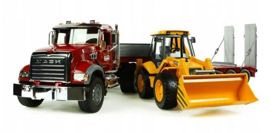 Pojazd MACK z naczepą i koparko-ładowarka JCB