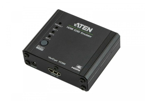 ATEN VC080 to emulator HDMI EDID, który jest przeznaczony do emulacji i przechowywania EDID wyświetlacza wideo, zapewniając stałe i niezawodne dane EDID dla urządzenia źródłowego HDMI w celu efektywnej optymalizacji rozdzielczości wideo.