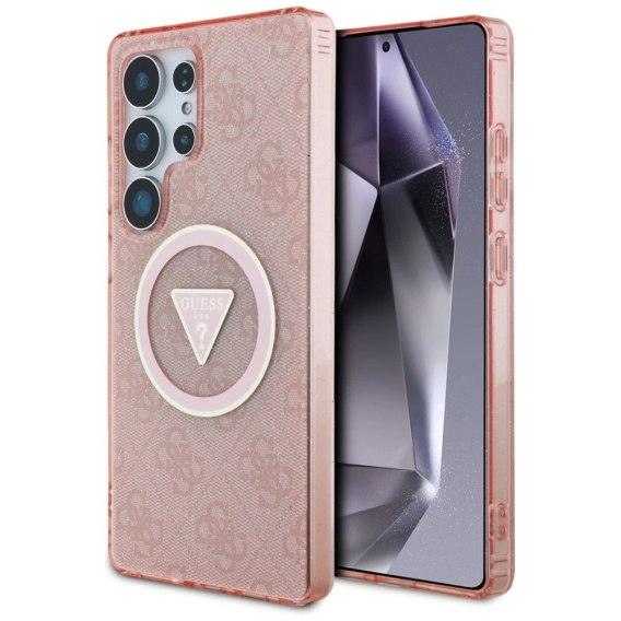 Etui Guess 4G Glitter Triangle Buttons MagSafe do Samsung Galaxy S25 Ultra różowy