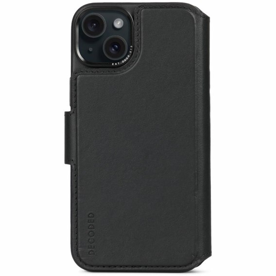 Etui z portfelem do Apple iPhone 15 Plus, 6.7", czarne, 3 kieszenie na karty