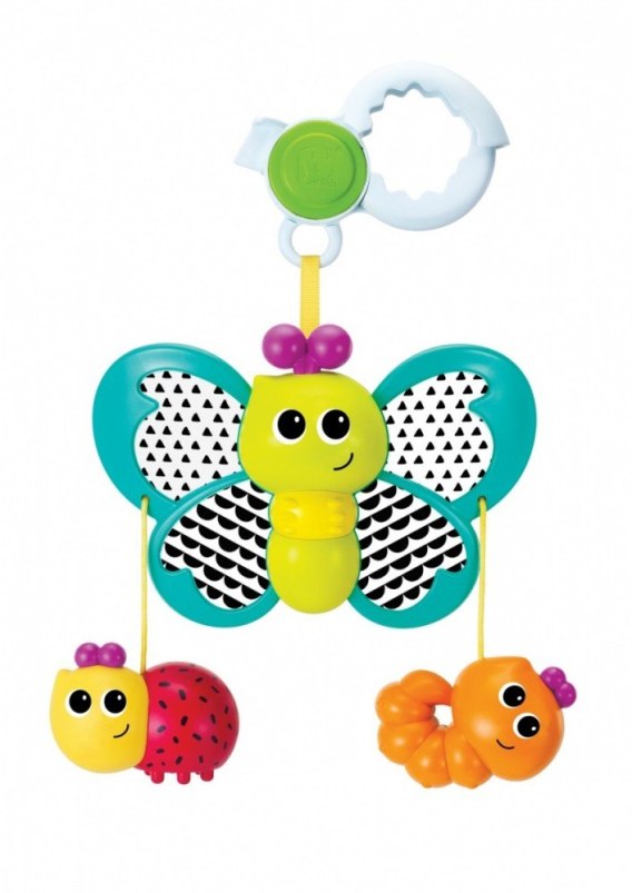 Kolorowa zawieszka motylek z klipsem, dzięki któremu można ją zawiesić na wózek, fotelik samochodowy czy bujaczek. Ma dodatkowe 2 zawieszki biedronkę i robaczka, które dostarczą jeszcze więcej zabawy! Zawieszka umili dziecku każdy spacer i podróż.