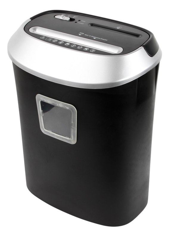 • Niszczarka Activejet ASH-1201D, P-3, 25 l, ścinki 5x38 mm, 12 kartek, czarno-srebrna.