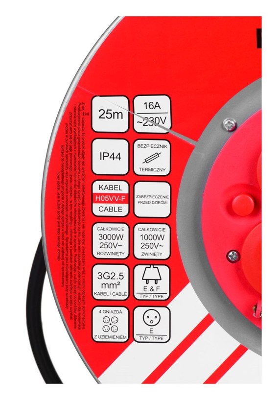 • Przedłużacz elektryczny bębnowy 25M VERTEX 3x2,5mm PB25METAL czarny