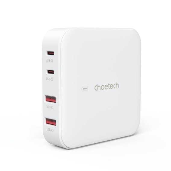 Szybka ładowarka sieciowa GaN Choetech PD8008 100W 2x USB-A / 2x USB-C - biała