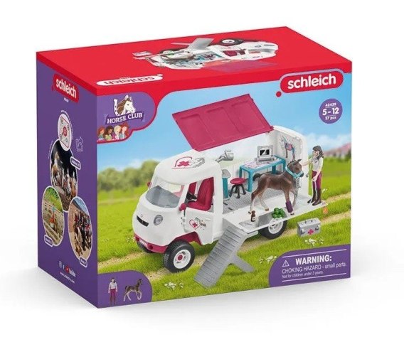 Bip, bip! Nadjeżdża mobilna lecznica dla zwierząt z serii schleich HORSE CLUB! W samą porę! Źrebak rasy hanowerskiej jest ranny. Nie ma czasu do stracenia - ale to nic nowego dla profesjonalnej pani weterynarz. Spokojnie i ostrożnie wprowadza źrebaka do przenośnego aparatu rentgenowskiego. Uff, nic nie jest złamane. Zranione zwierzę dostaje środki przeciwbólowe. Po takim szoku źrebak na pewno zasługuje na pęczek świeżych marchewek. Spójrz, już czuje się lepiej i rusza gonić motyle. A mobilna lecznica dla zwierząt może ruszać do kolejnego wypadku. To pasjonujące, nie sądzisz?